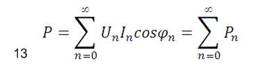 對(duì)于周期非正弦交流電,將周期交變電壓電流進(jìn)行傅里葉變換,展開(kāi)為傅里葉級(jí)數(shù),有功功率計(jì)算公式還可表示為: